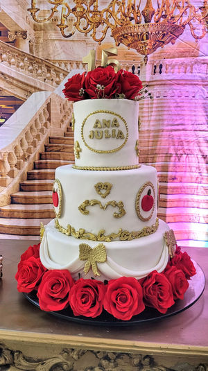 15 Anos - Ana Júlia - Vermelho e Dourado (A Bela e a Fera)